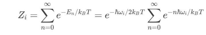 每个振动模式类似于量子谐振子,可以计算其零点能和热力学贡献。在统计热力学框架下,振动模式的配分函数