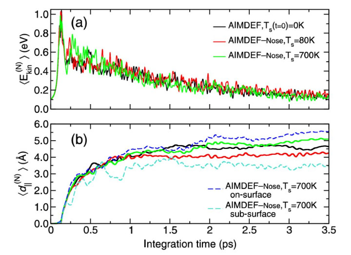 Novko等人通过对Ag(111)表面吸附氮原子的AIMD模拟,比较了80K和700K下吸附概率和动力学,发现温度对吸附路径和能量耗散有细微影响。